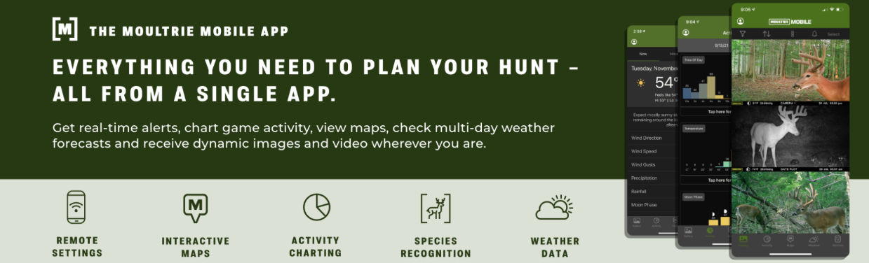 Get everything you need, from anywhere, with the Moultrie Mobile App – the all-in-one answer to strategically plan your hunt. Manage your cameras and feeders, and get hunting predictions and insights you can’t get anywhere else.